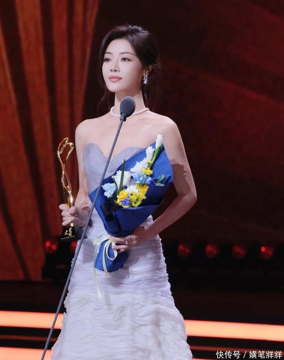 在今年举办的影视盛典上,邓家佳凭借扎实演技成功斩获大奖。镜头下,她一手捧着鲜花,一手紧握奖杯,神情中透出满满的笃定与光芒。